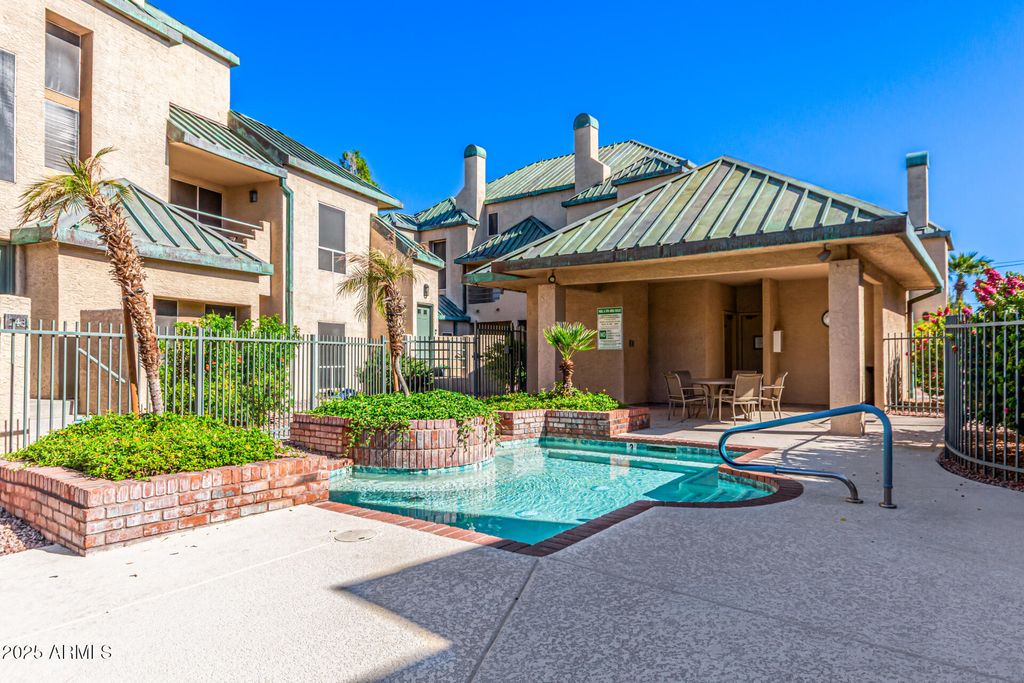 Downtown Phoenix Condo - Prime Location! Experience the best of city living in this beautifully maintained freshly painted with updated kitchen, ground-level 2-bedroom garden condo located in the lush, resort-style community of Renaissance Park. Perfectly situated in the heart of Downtown Phoenix, this home places you steps away from everything! The Arizona Science Center, Heritage Square, Chase Field (Home of the Diamondbacks), ASU Downtown & UofA Medical Campus, Children's Museum, Phx Convention Center, Symphony Hall, The Suns Arena, Herberger Theater, and an endless selection of restaurants, coffee shops, and shopping. Enjoy a relaxing, low-maintenance lifestyle with direct access to two sparkling community pools, and heated spa! Inside, enjoy a bright and inviting layout with a private split primary suite, welcoming guest bedroom, and open living and dining spaces perfect for relaxing or entertaining. Includes a full bath, powder room, in-unit washer/dryer, covered parking, and convenient access to the light rail.