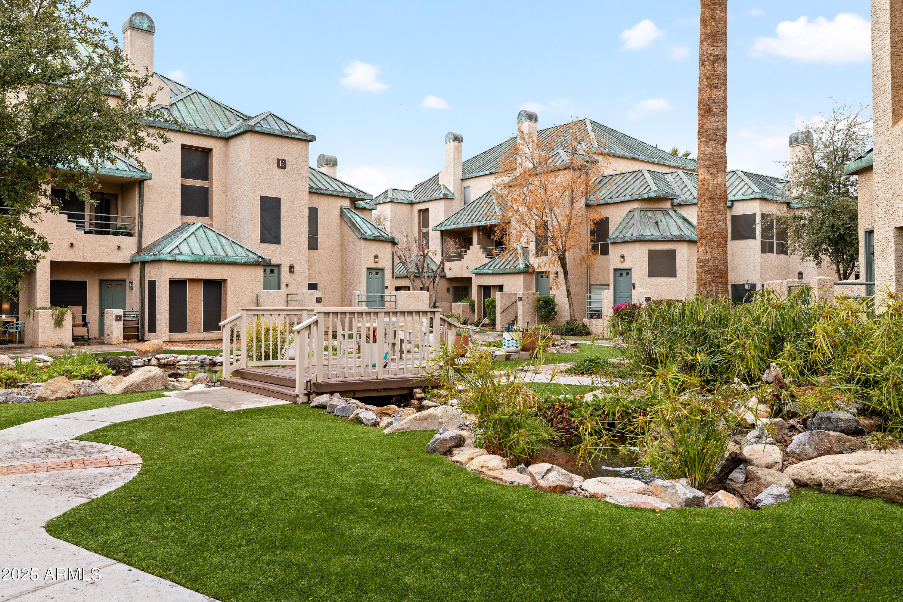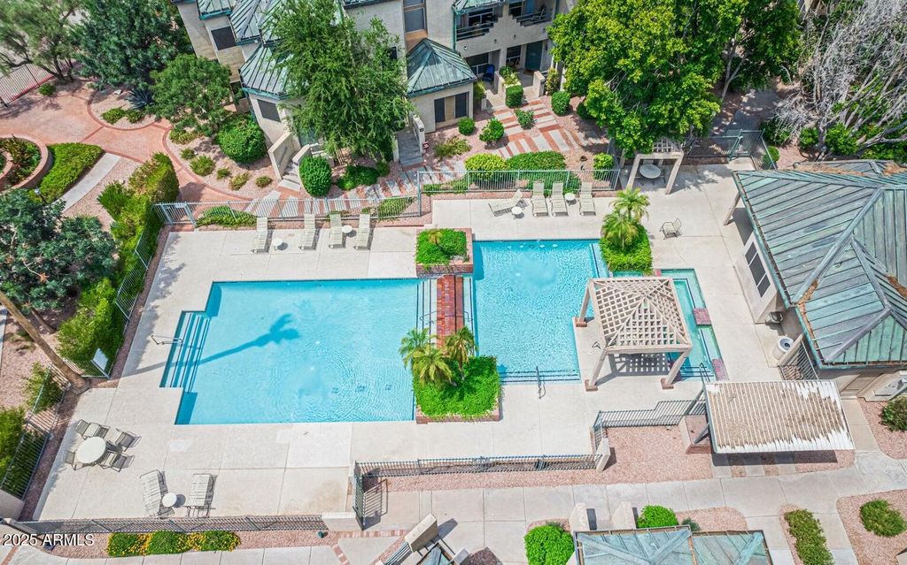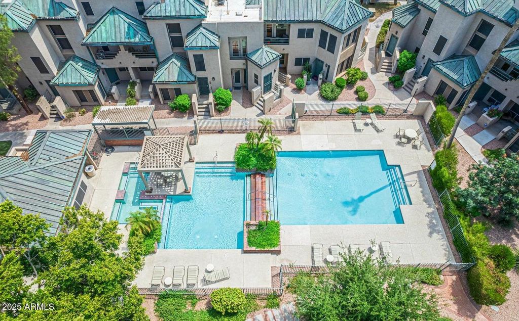 Charming 2 bedroom 2 bathroom condo in the gated community Renaissance Park located in the heart of downtown Phoenix! Ground level unit on Northeast corner with no interior steps, 9 ft ceilings, in-unit laundry and an open-concept floor plan. Completely renovated with gorgeous finishes and tile flooring throughout. Kitchen features granite counters, stainless appliances, fluted upper cabinets and bar top seating. Large primary bedroom with updated bathroom featuring double sinks and walk-in closet with additional storage area behind the closet. Spacious secondary bedroom features an enclosed covered patio that would make for a great little office space or reading nook. Guest bathroom has also been fully renovated. Newer AC unit (2022) and... covered parking space just outside the unit. Community features pool, spa, onsite gym, mature trees, water features, two gates and multiple common areas. Walk to restaurants, museums, Chase Field, ASU & U of A downtown downtown campuses, light rail and so much more!