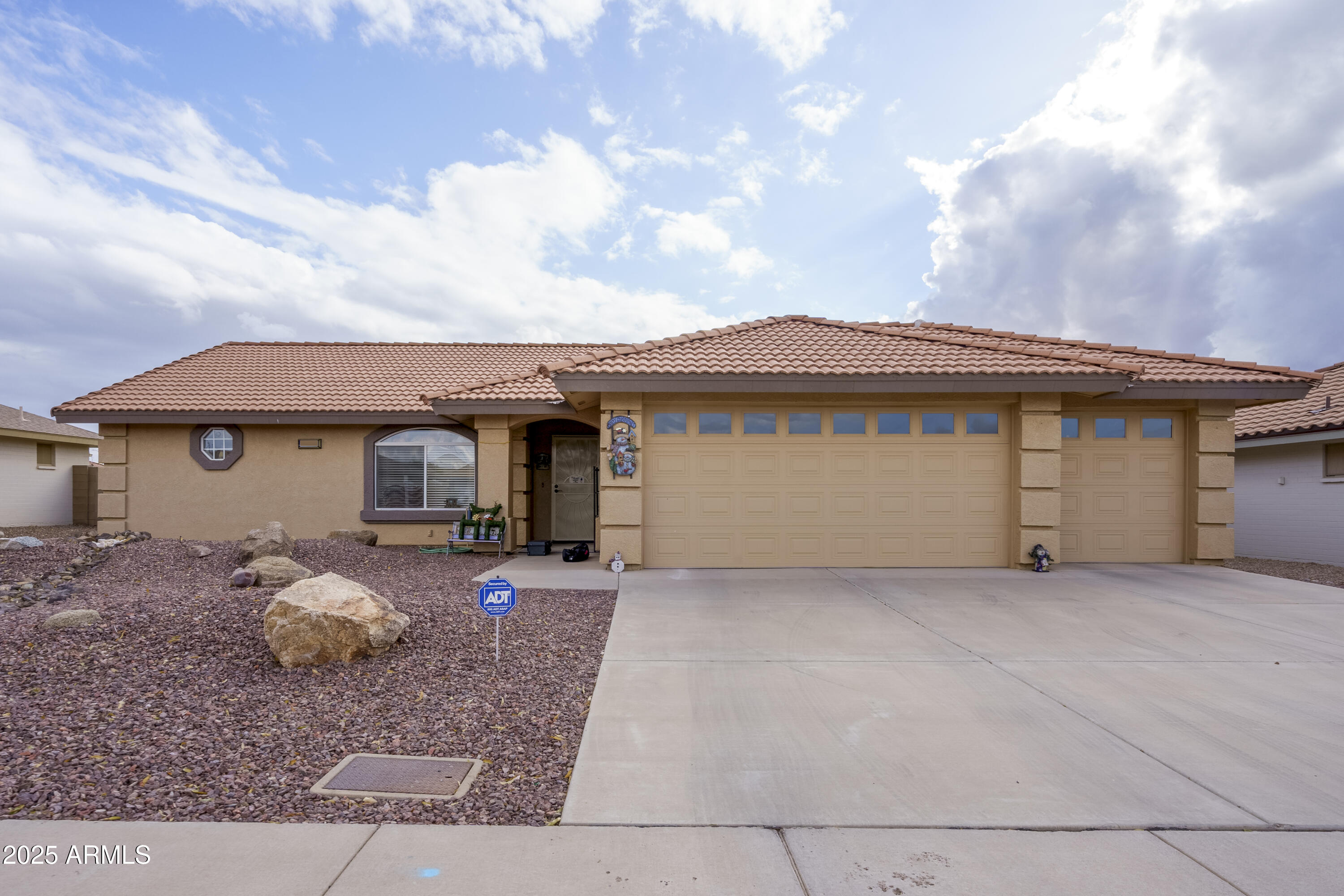 2 bedroom, 2 bath, 3 car garage with FULL DEPTH IN THE 3RD STALL! Vaulted living/family area, tile flooring throughout the entire property, no carpet. Kitchen has corian counters, upgraded maple cabinets, refrigerator will be offered with the property. Spacious master bedroom, ceiling fan, south facing window, tille flooring. Master bath has double sinks, separate his/her closets, shower stall. Guest bedroom has tile flooring as well, walk-in closet. Spacious 3 car garage...standard 2 car stall and separate 1 car stall with full depth. Inside laundry room, washer/dryer offered with the property. South facing back yard, covered patio, privacy wall all three walls.