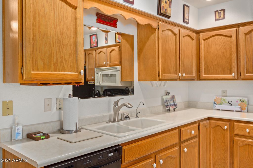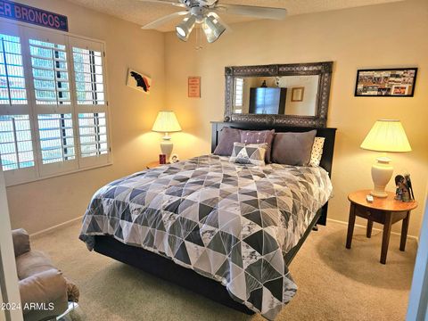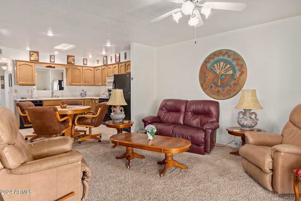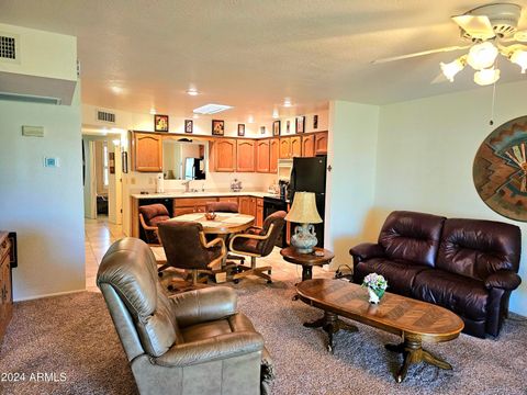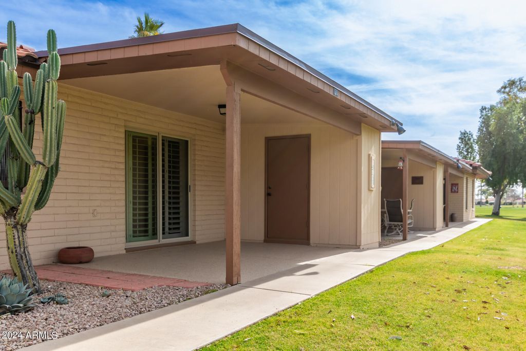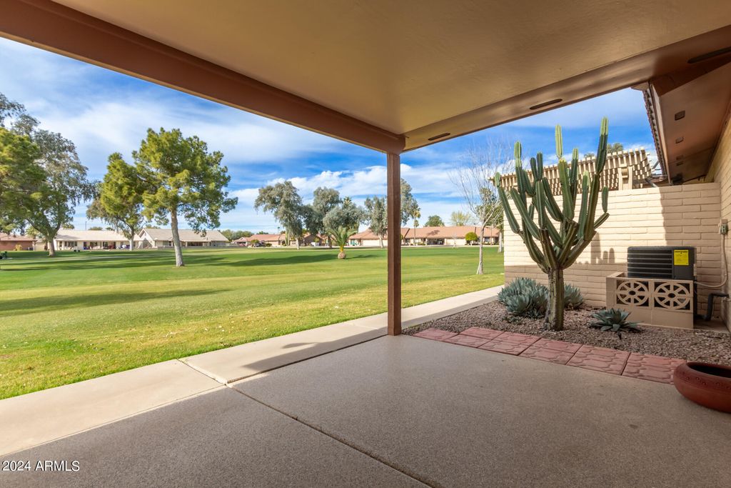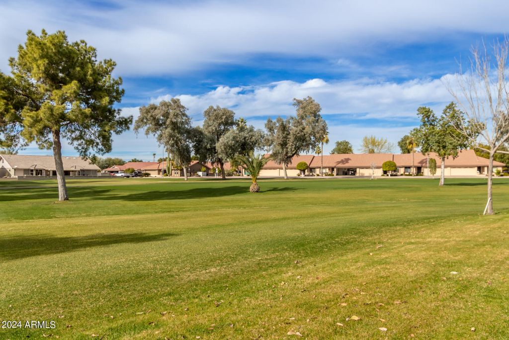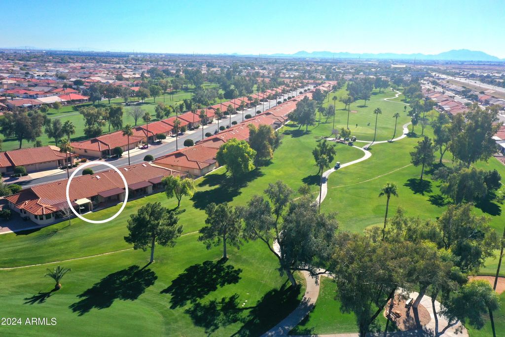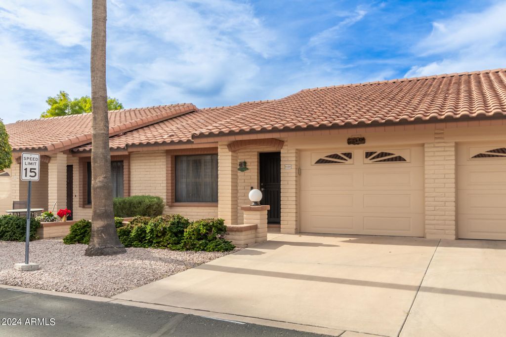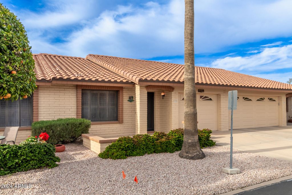 Own a fantastic golf course property in the highly sought-after Sunland Village! This charming home offers a garage with extended length, great for a work/hobby space, and a front patio ideal for your morning coffee. The bright & inviting interior boasts an open layout with areas that merge seamlessly, promoting a greater traffic flow. The kitchen showcases recessed lighting, a skylight, a plethora of oak cabinetry, and appliances. The primary bedroom has a walk-in closet & its own bathroom. The back patio overlooks the lush golf course. Its west exposure will allow you to enjoy colorful sunsets. This amazing 55+ community offers a variety of amenities, including pools, fitness facility, shuffleboard, pickleball & tennis courts, golf & much more. Don't miss out, act now!