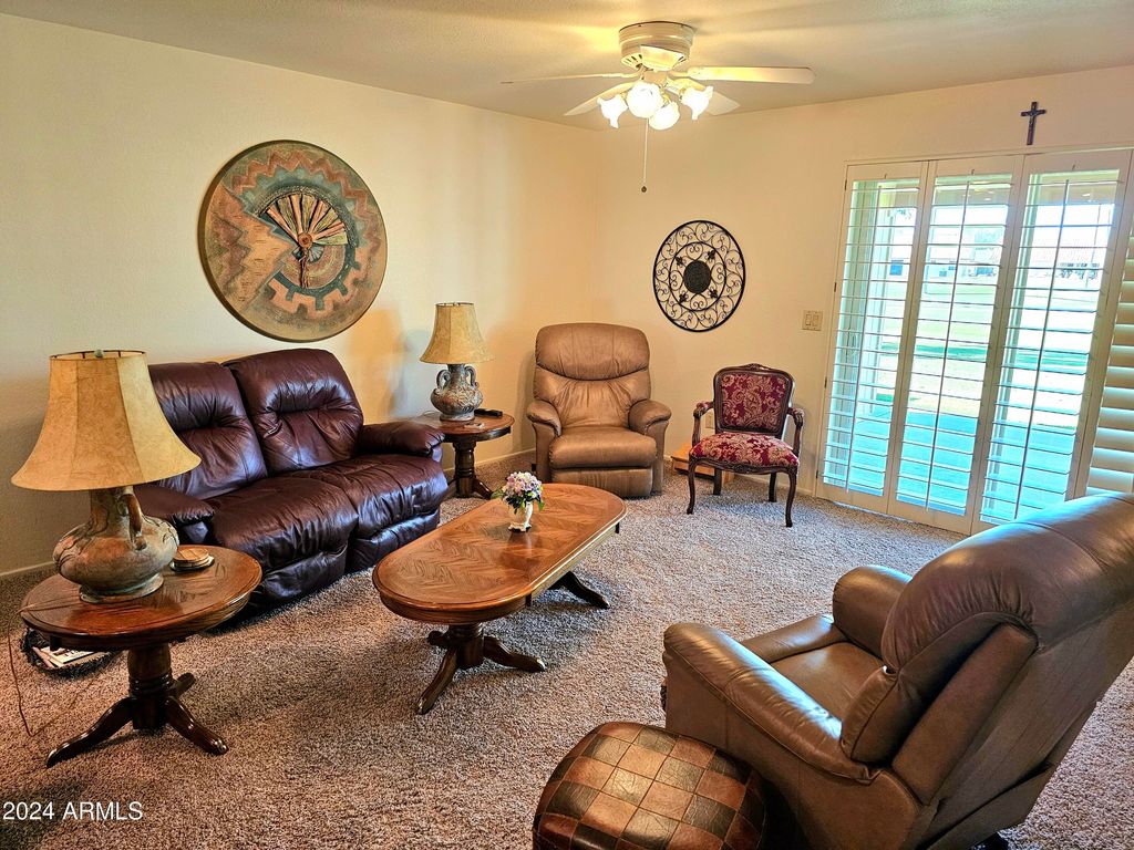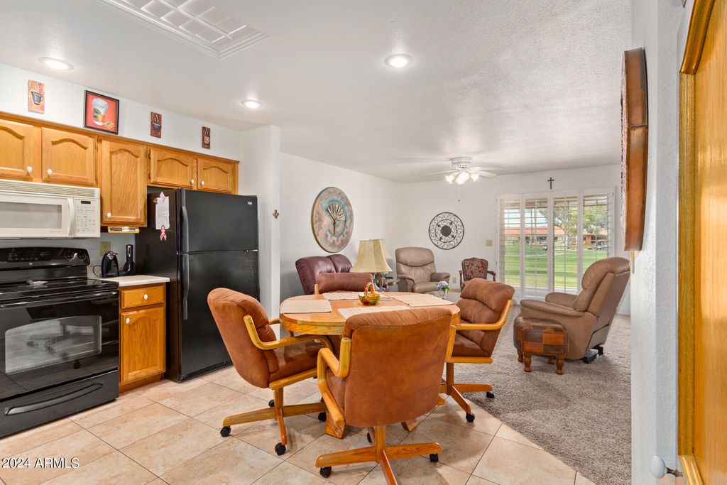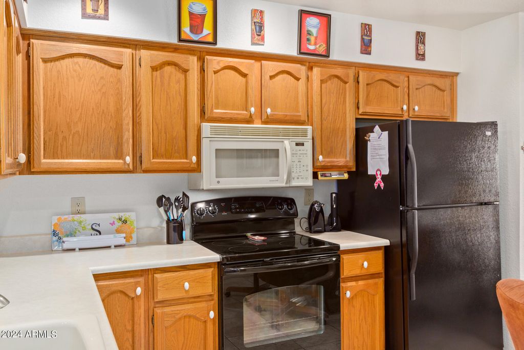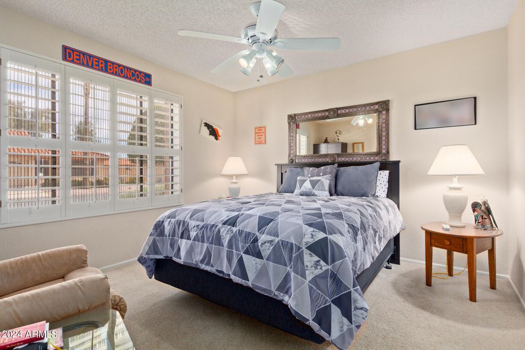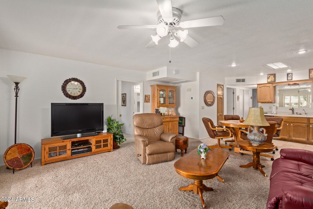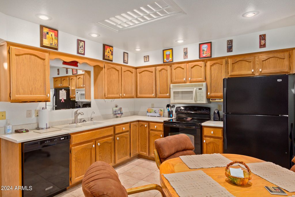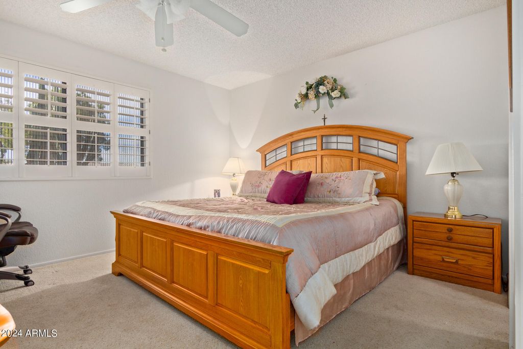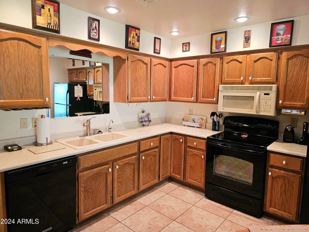 Own a fantastic golf course property in the highly sought-after Sunland Village! This charming home offers a garage with extended length, great for a work/hobby space, and a front patio ideal for your morning coffee. The bright & inviting interior boasts an open layout with areas that merge seamlessly, promoting a greater traffic flow. The kitchen showcases recessed lighting, a skylight, a plethora of oak cabinetry, and appliances. The primary bedroom has a walk-in closet & its own bathroom. The back patio overlooks the lush golf course. Its west exposure will allow you to enjoy colorful sunsets. This amazing 55+ community offers a variety of amenities, including pools, fitness facility, shuffleboard, pickleball & tennis courts, golf & much more. Don't miss out, act now!
