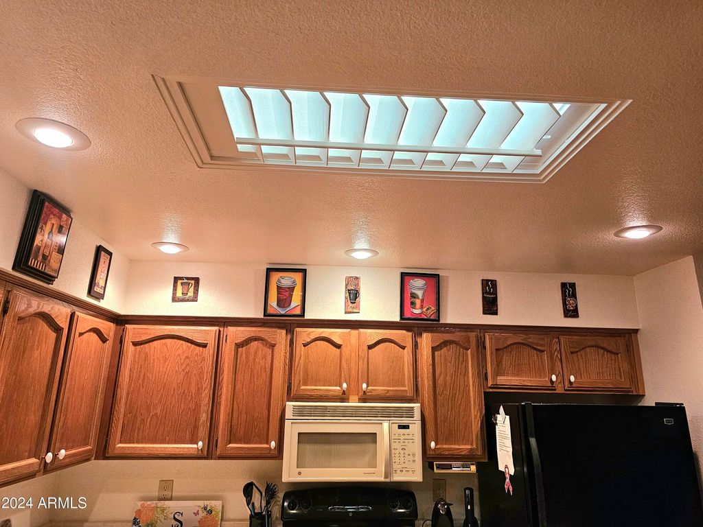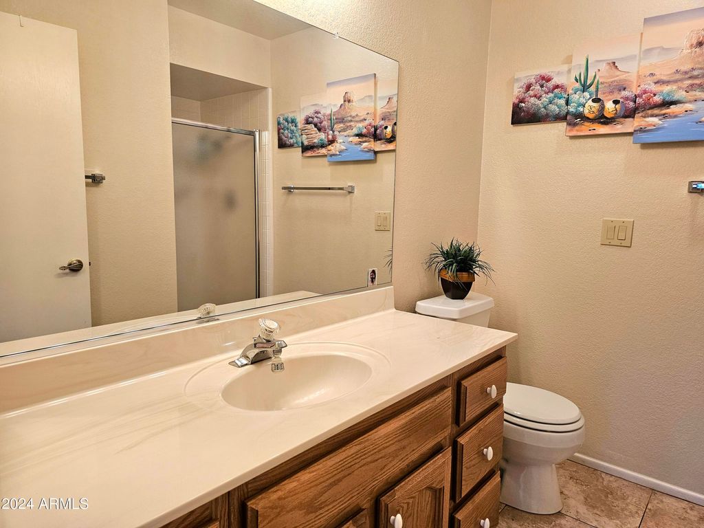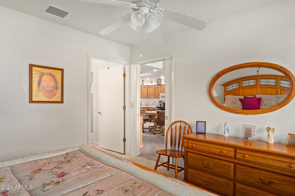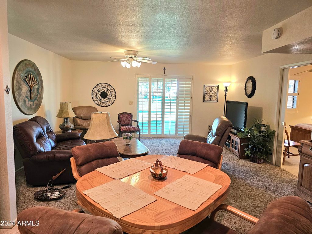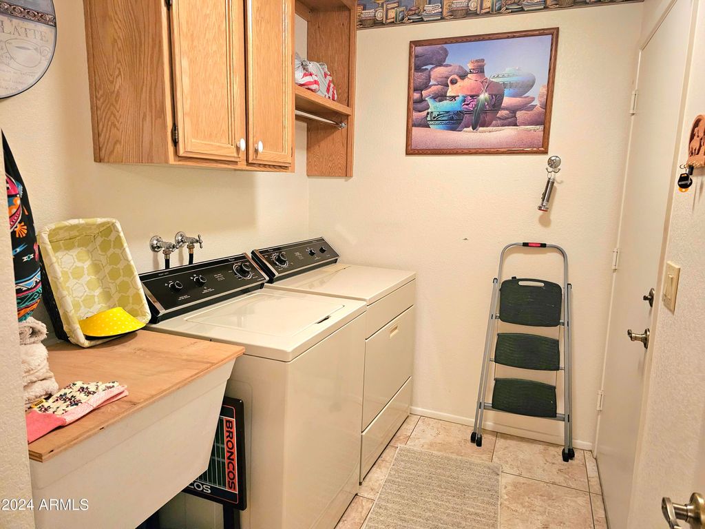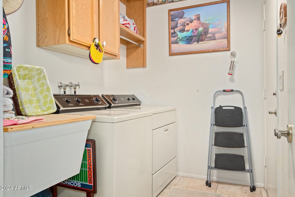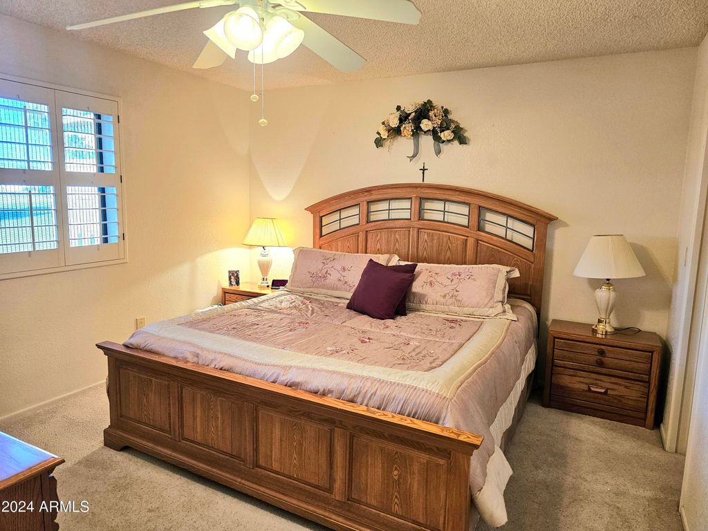 Own a fantastic golf course property in the highly sought-after Sunland Village! This charming home offers a garage with extended length, great for a work/hobby space, and a front patio ideal for your morning coffee. The bright & inviting interior boasts an open layout with areas that merge seamlessly, promoting a greater traffic flow. The kitchen showcases recessed lighting, a skylight, a plethora of oak cabinetry, and appliances. The primary bedroom has a walk-in closet & its own bathroom. The back patio overlooks the lush golf course. Its west exposure will allow you to enjoy colorful sunsets. This amazing 55+ community offers a variety of amenities, including pools, fitness facility, shuffleboard, pickleball & tennis courts, golf & much more. Don't miss out, act now!