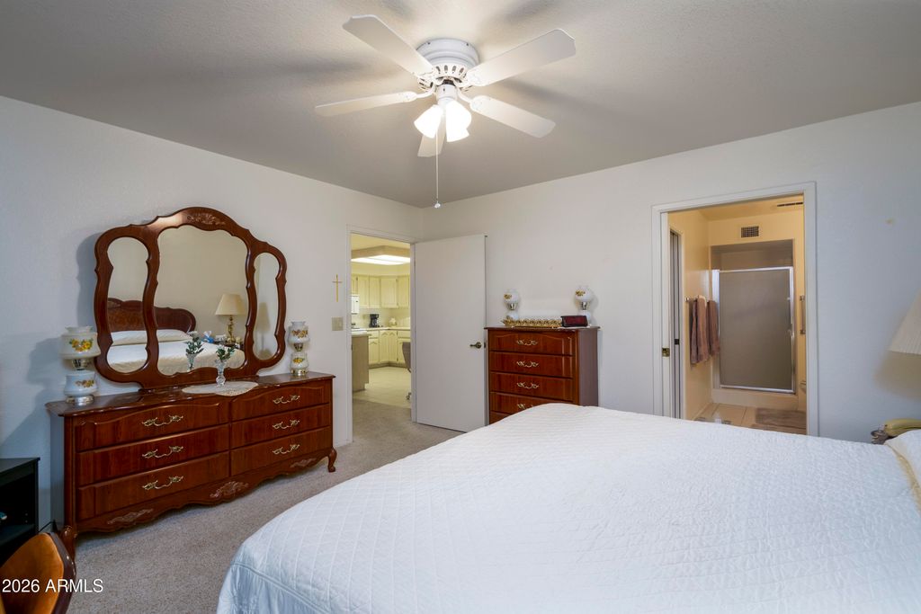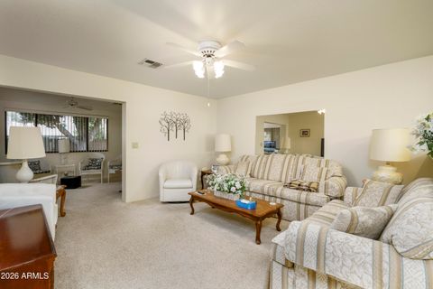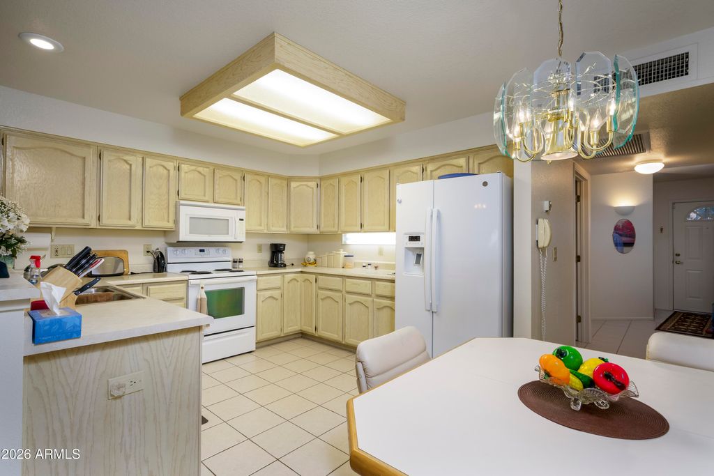 Pet Section Condo! 2 bed, 2 bath, 1 car garage, garden condo in active 55+ adult community of Sunland Village East. Open living/dining/kitchen ''great room'' layout, very popular! Expanded Arizona room for the additional square footage sitting area. Spacious master bedroom, double vanity sinks, walk-in closet, shower stall in the master bedroom. Guest bedroom located in the front of the unit providing privacy for you and your guests. Inside laundry room as you enter from garage. Seller would prefer to sell completely furnished. Pets ARE allowed in this section.