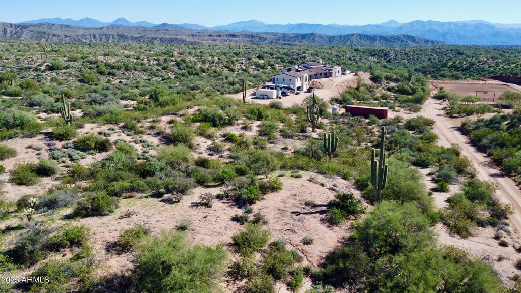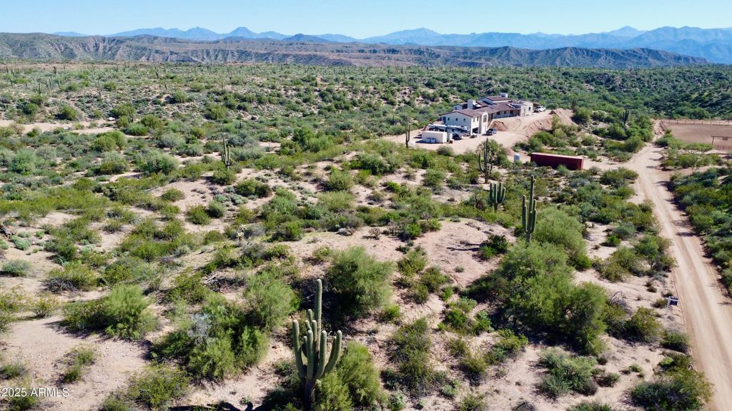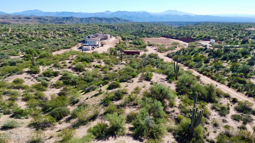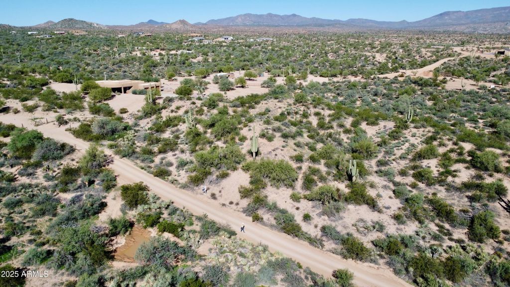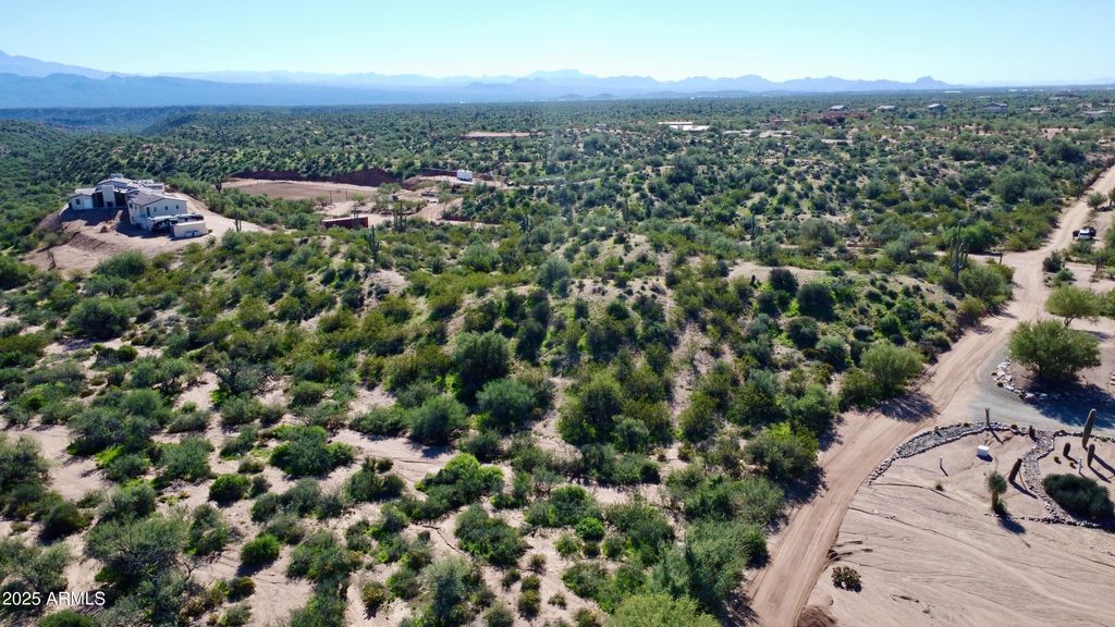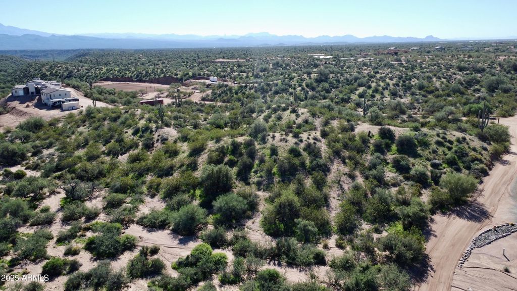 7.67 AC equestrian dream: hilltop homesite + wide, usable lower bench ideal for arena/barn/turnouts. Large-acreage, million-dollar neighbors; private roads kept smooth - easy trailering. A few hundred feet to Tonto National Forest & Granite Mountain preserve trails - ride for miles. 360 mountain views, lush Sonoran desert with saguaros, multiple build sites. Unincorporated Maricopa County near 142nd Pl & Leisure Ln. SRP power nearby; well & septic needed. Possible split - buyer to verify. Motivated seller - aggressively priced to sell!