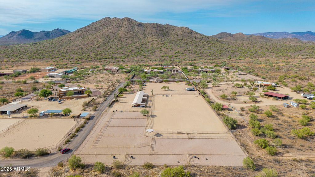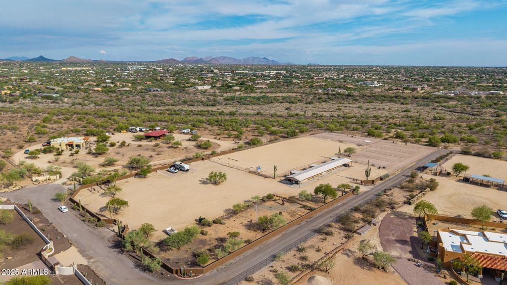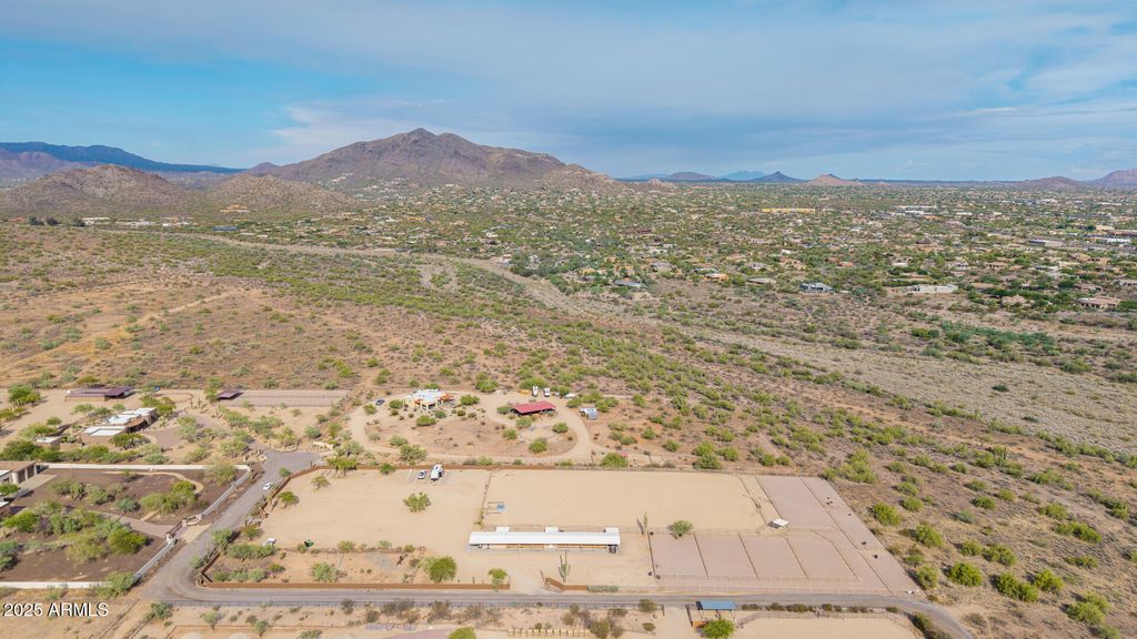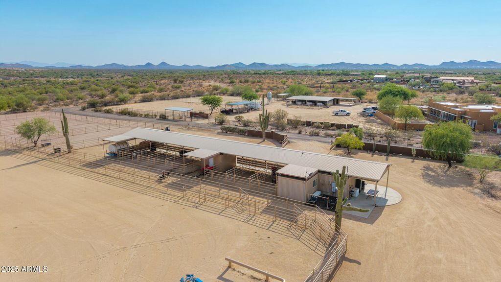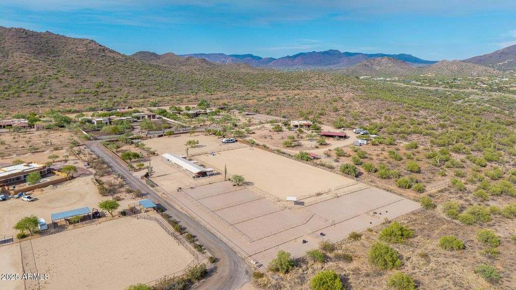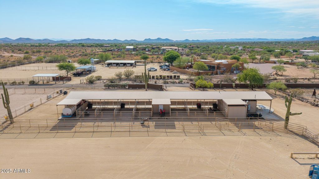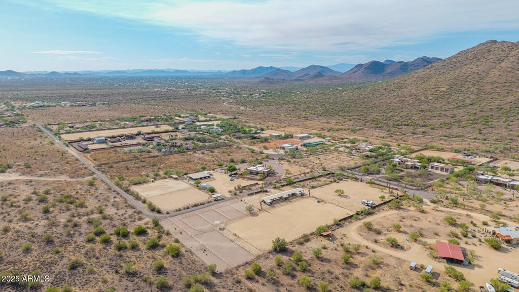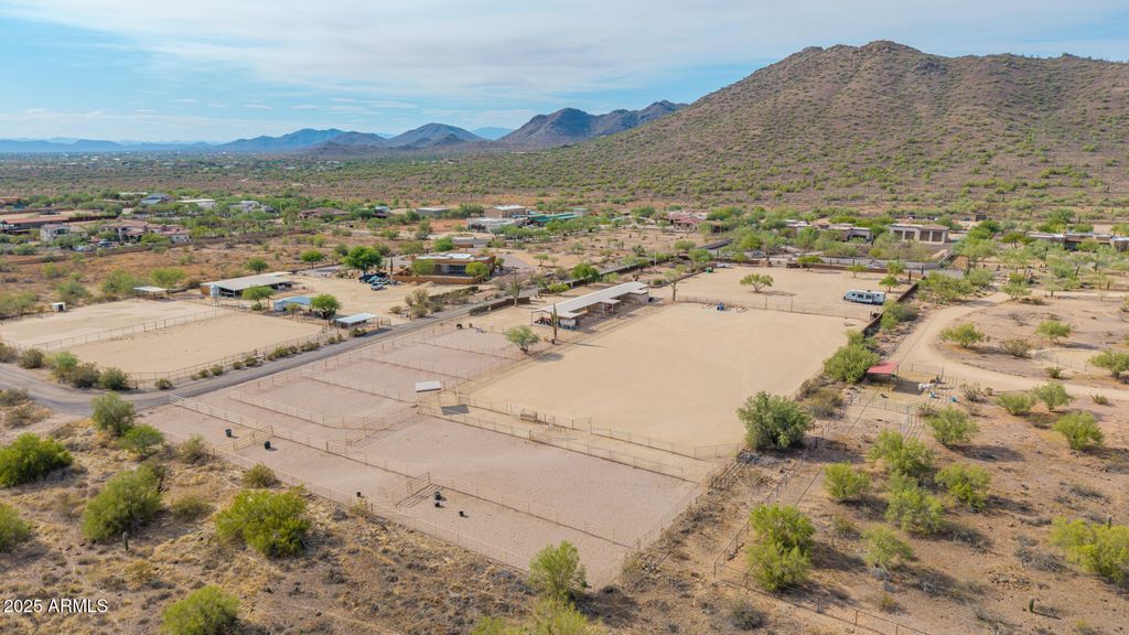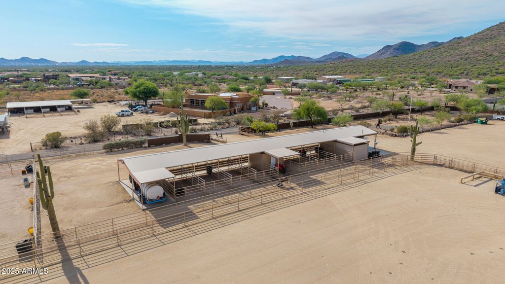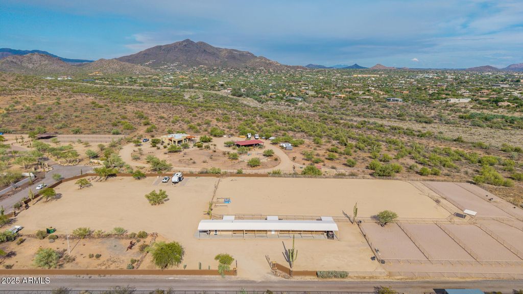 Specular Opportunity to own one of the few horse properties in this hidden gem area in the Town of Cave Creek, with only16 horse properties existing at this time in this R-190 Desert Rural zoning area. Property offers 4.3 acres, with a Team Ropers dream full roping arena, turn back alley, cattle pens, Priefert electric Chute,7 covered stalls w runs, numerous huge outdoor horse pens, wash rack, tack room, 200 amp panel, A remodeled studio style guest quarters w kitchen, shower & laundry & covered patio- Best of all seller has architectural renderings for a beautiful home+guest house. 4 RV full hook ups- new septic tank- steps from Cave Creek Regional Park & trails to the north, state land to south. CITY WATER! Ask listing agent for the property improvements made