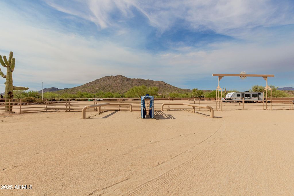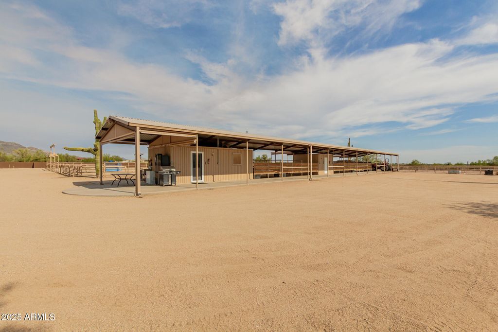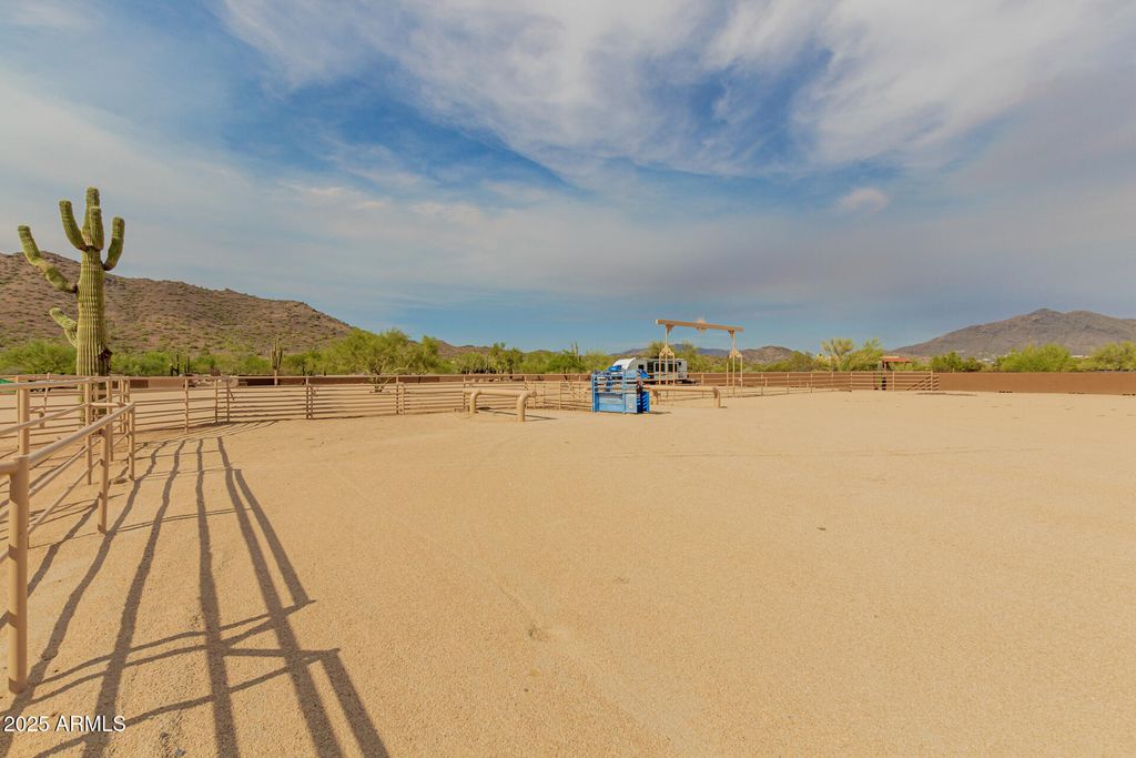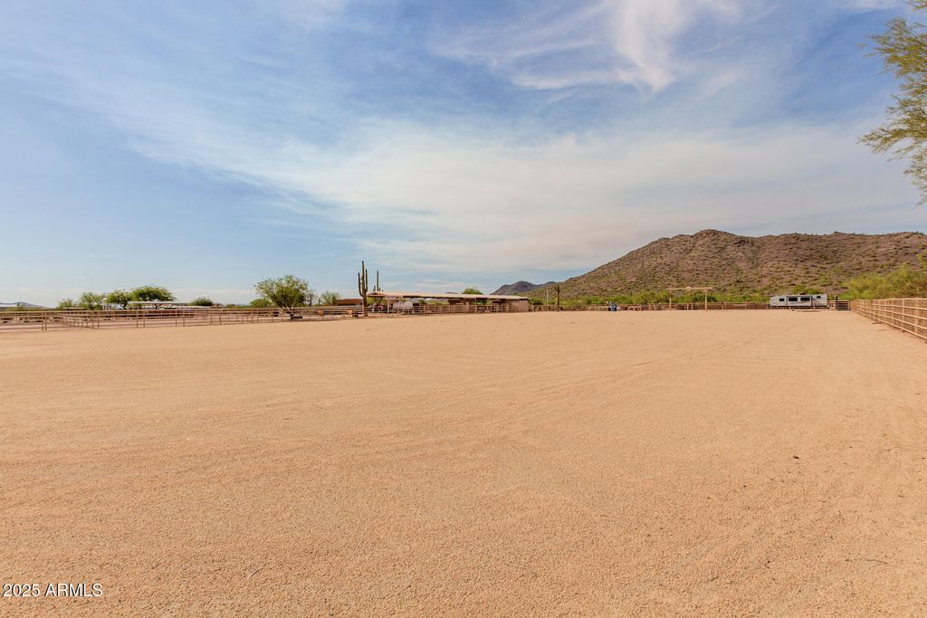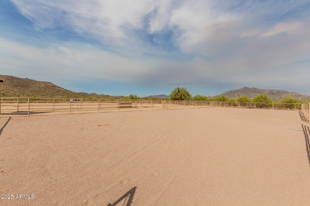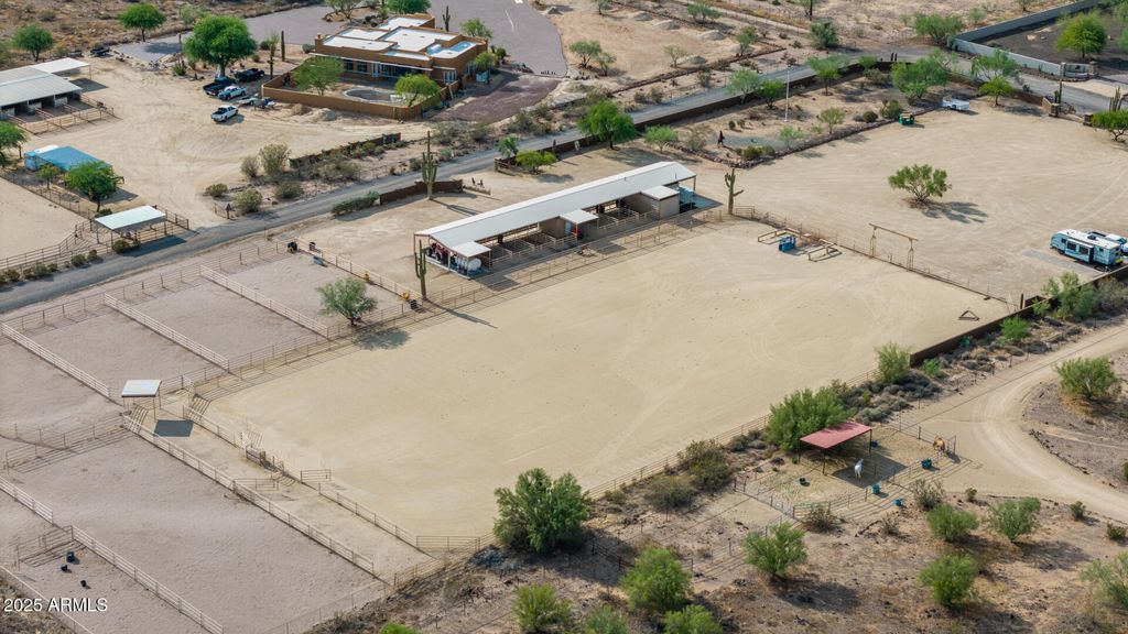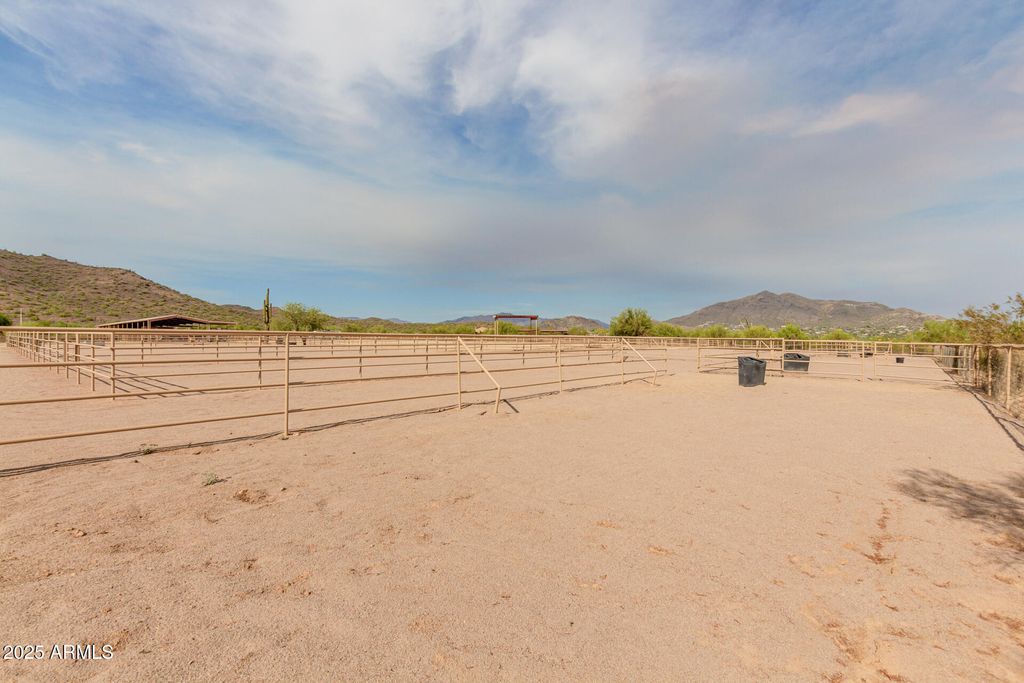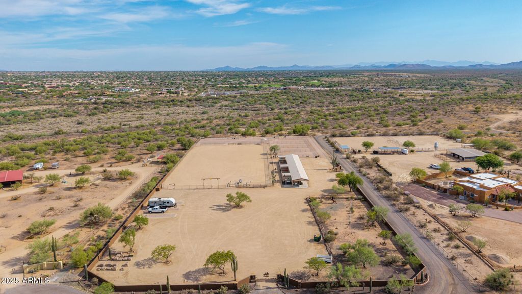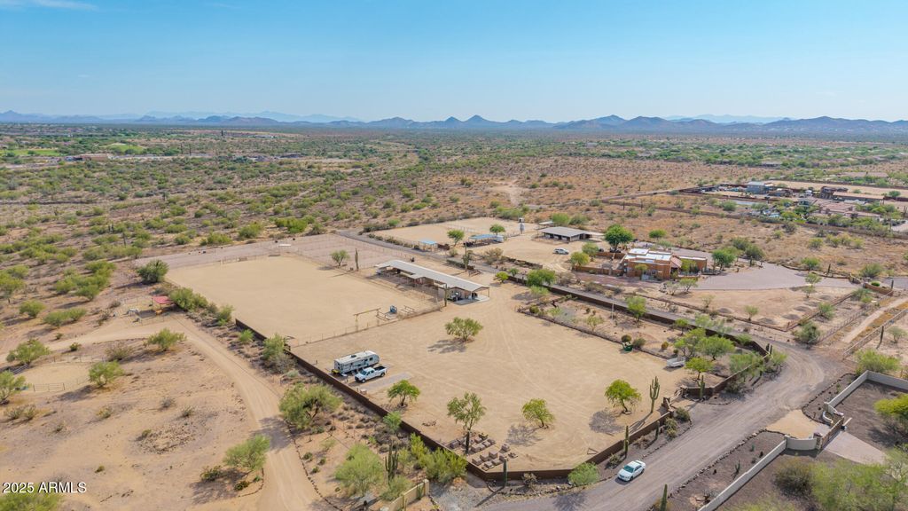 Specular Opportunity to own one of the few horse properties in this hidden gem area in the Town of Cave Creek, with only16 horse properties existing at this time in this R-190 Desert Rural zoning area. Property offers 4.3 acres, with a Team Ropers dream full roping arena, turn back alley, cattle pens, Priefert electric Chute,7 covered stalls w runs, numerous huge outdoor horse pens, wash rack, tack room, 200 amp panel, A remodeled studio style guest quarters w kitchen, shower & laundry & covered patio- Best of all seller has architectural renderings for a beautiful home+guest house. 4 RV full hook ups- new septic tank- steps from Cave Creek Regional Park & trails to the north, state land to south. CITY WATER! Ask listing agent for the property improvements made